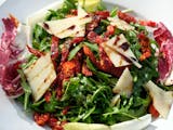 Arugula, endive, radicchio, sun-dried tomatoes, honey vinaigrette, shaved Parmesan cheese.