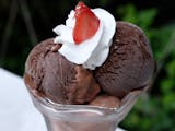 Classic vanilla and chocolate gelato separated by a cherry and sliced almonds covered in cinnamon, finished with a chocolate coating.