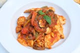Baked seasoned eggplant, zucchini, tomatoes, fresh mozzarella cheese.